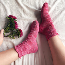 Adāmas virzienā no pirkstgala uz valnīti – iesākumā pirkstgala uzmešanai tiek izmantota Judy’s Magic valdziņu uzmešanas tehnika, bet, pieaudzējot pirkstgala valdziņus, arapmetumu palīdzību veido modīgus caurumus pirkstgala sānos. Zeķes virspusē top skaisti adītas puķu imitācijas, kuras mums vislabāk saistās ar asterēm, neskatoties uz raksta oficiālo nosaukumu pienenes. Pēcāk top papēdis, sākumā valdziņus attiecīgi pieaudzējot, bet pēc tam, adāms izmantojot German īsās rindas. Pēc papēža pabeigšanas, puķes top visapkārt zeķei. Šīs zeķes adāmas gan izmantojot Magic Loop metodi, gan arī zeķu adatas.