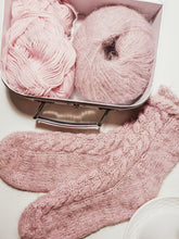 Nepieciešamie materiāli: sport weight dzija (paraugs adīts L izmērā ar Filcolana Arwetta Classic tonī 197 (mint) (50g/210m) kopā ar MarumaYarns KidSilk tonī Unicorn (50g/420m), (L izmēram nepieciešami divi kamoli Arwetta (~60g), bet 1 kamols – KidSilk (~30 g)) ; apļadatas vai zeķu adatas 2.75 mm (vai nepieciešamo adatu izmēru, lai sasniegtu atbilstošo adījuma blīvumu); marķieris; lāpāmadata pavedienu noslēpšanai.