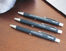 Pildspalva no metāla, ar soft touch pārklājumu. To turot plaukstā ir neslīdoša, matēta sajūta, nodrošinot ērtu rakstīšanu, lai nepieciešamo rokdarbu pieraksti vai labojumi būtu ergonomiski.